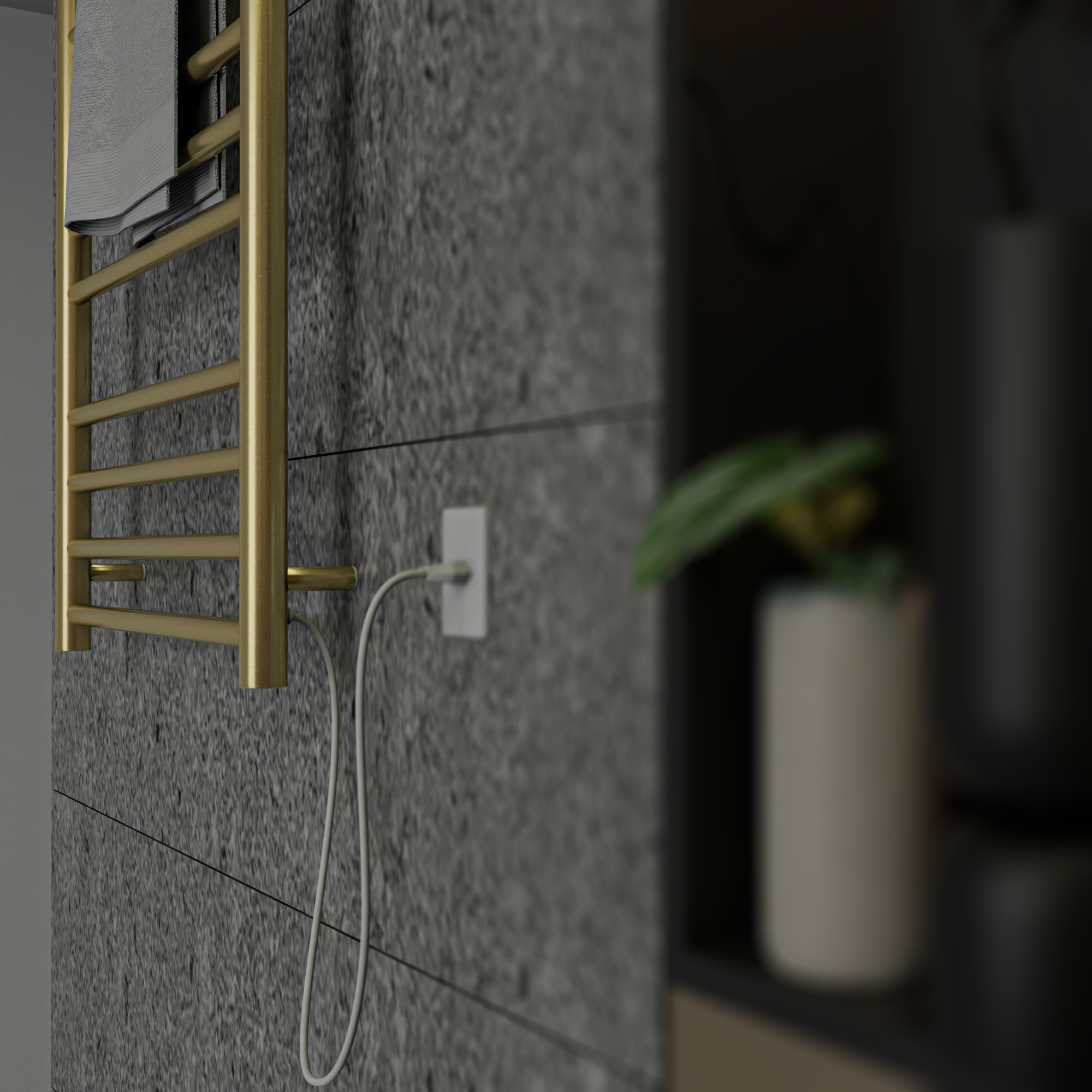 – Fio no lado direito: A saída do fio está posicionada à direita, considerando o toalheiro visto de frente